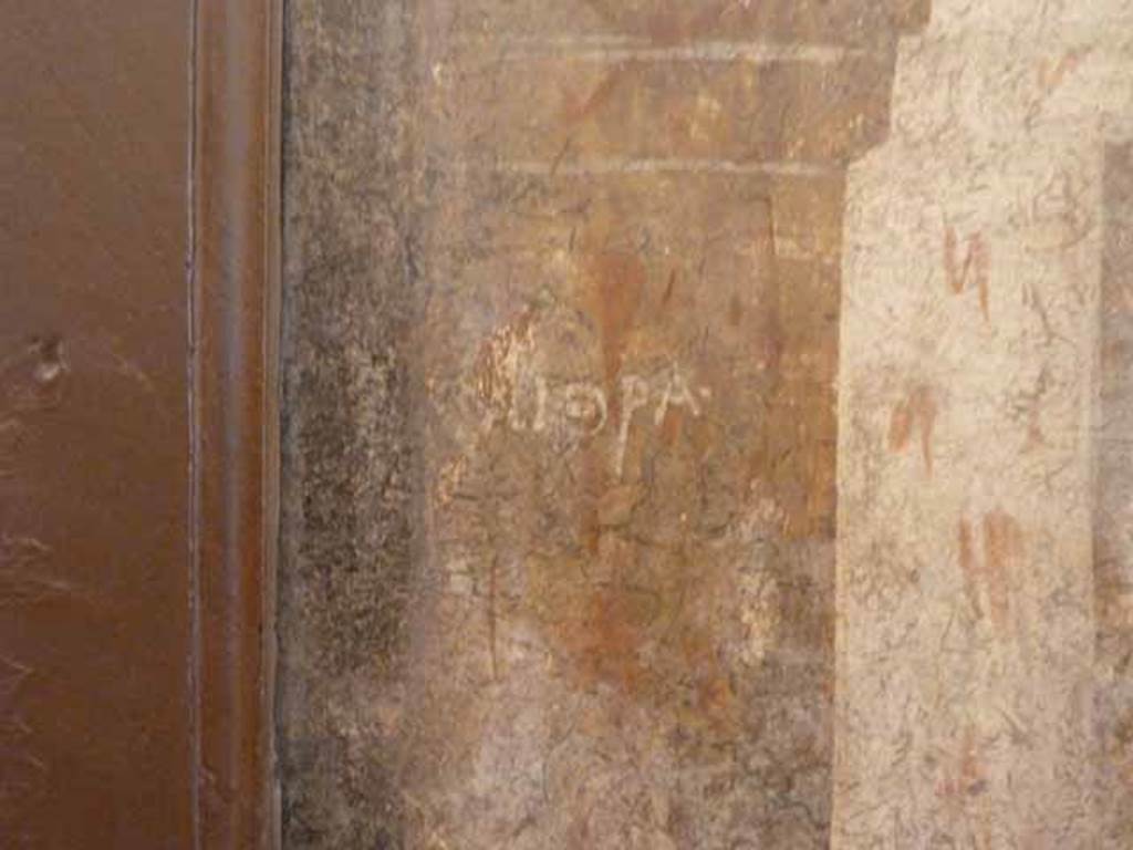 Column base with name, on left side of painting. Now in Naples Archaeology Museum, inventory number 109751.