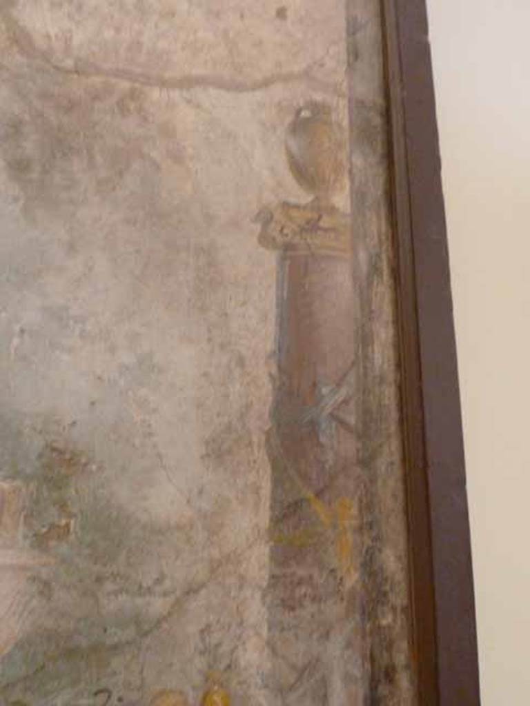 Top of column, on left side of painting. Now in Naples Archaeology Museum, inventory number 109751.