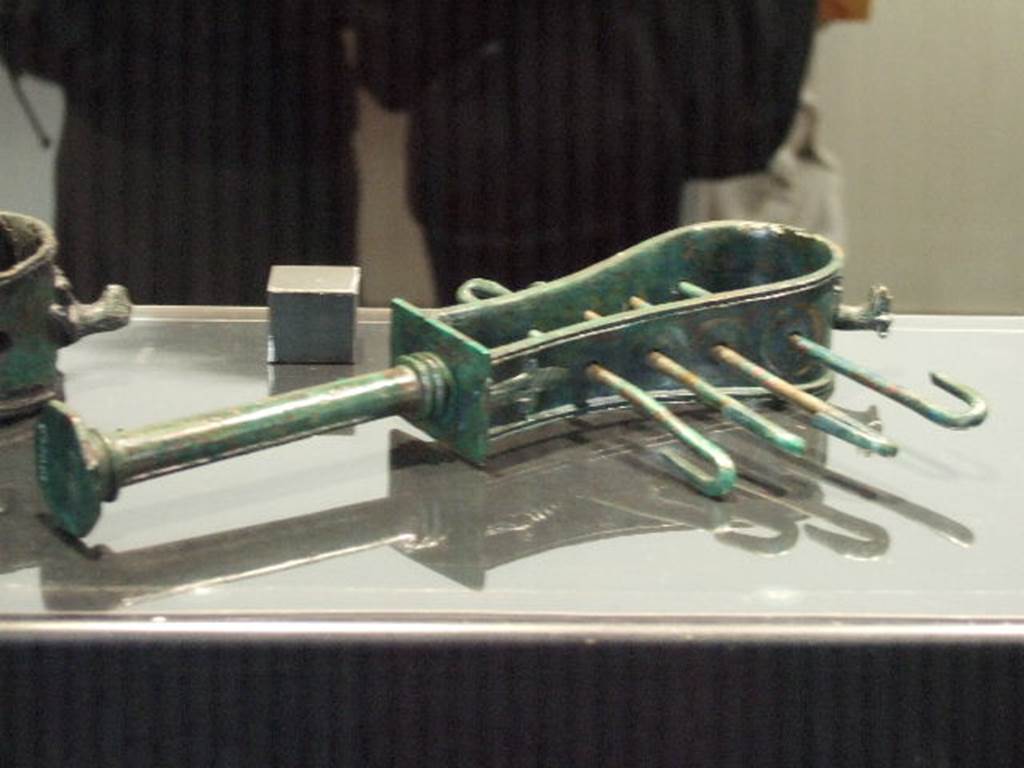 I.2.6 Pompeii. Bronze sistrum found in I.2.6. Now in Naples Archaeological Museum.