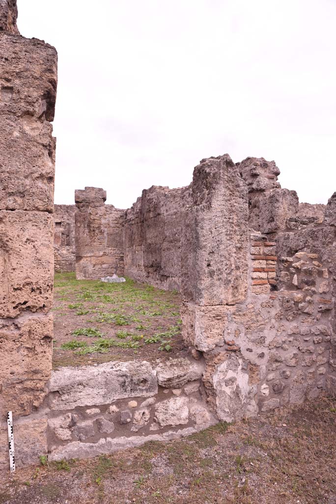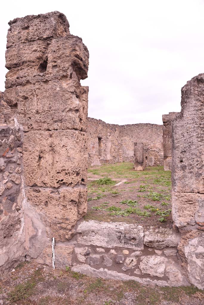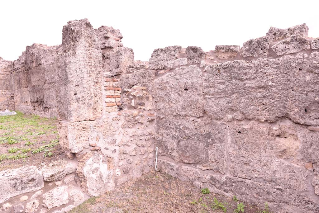 Looking towards doorway on north-east side of junction between Via Stabiana, on left, and Vicolo del Menandro, on right.