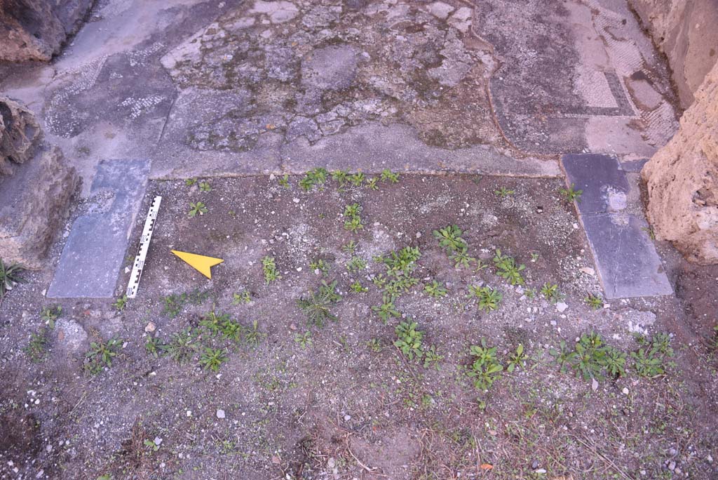 October 2019. Room 34, detail of flooring near south wall, with detail of