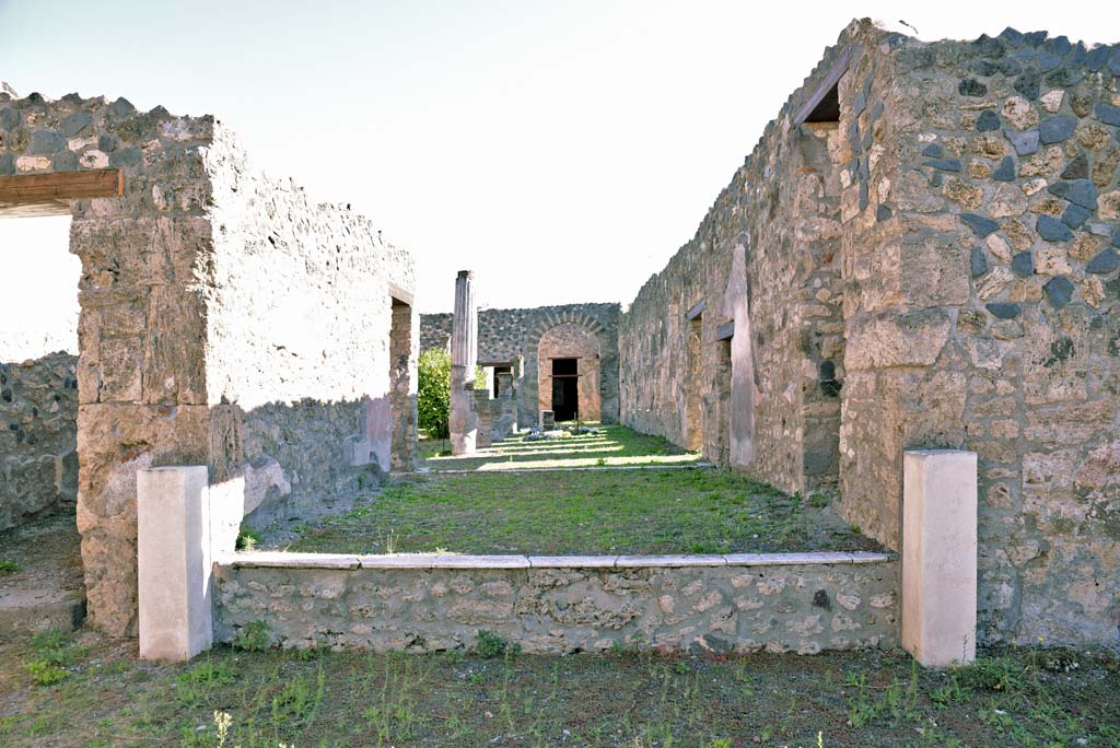 Tablinum 14, looking towards north wall with doorway into Corridor 15, and with Middle Peristyle 17, on right.