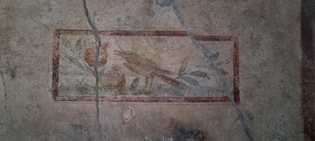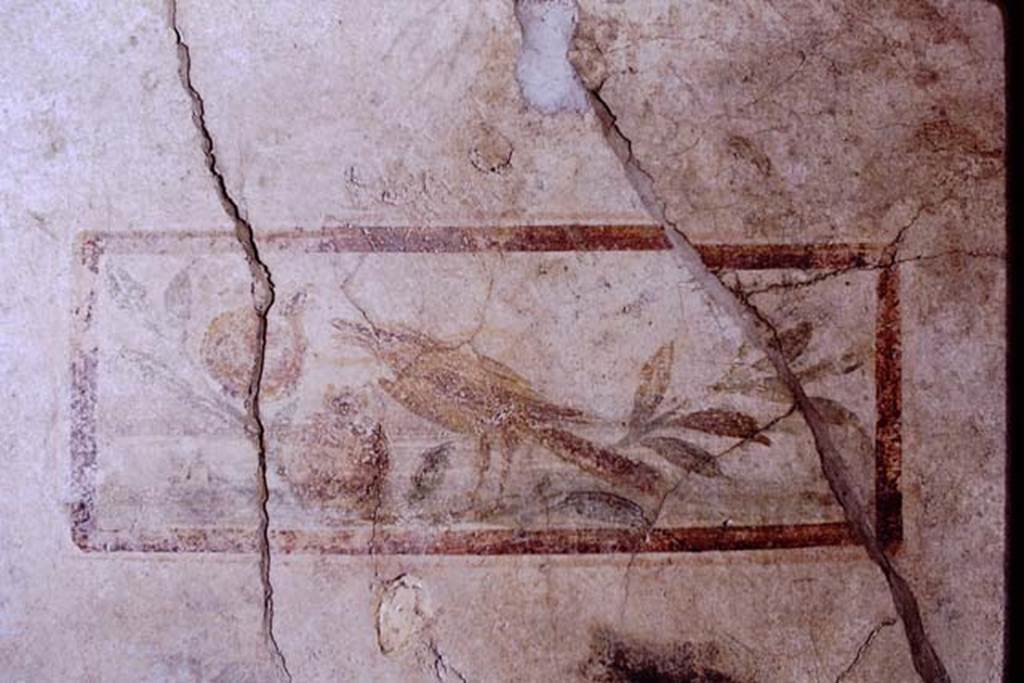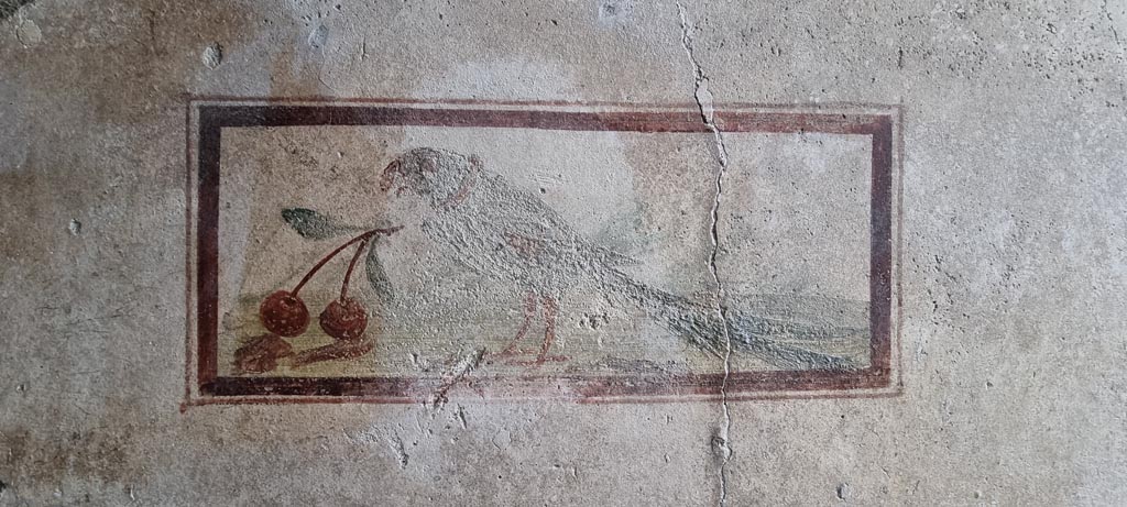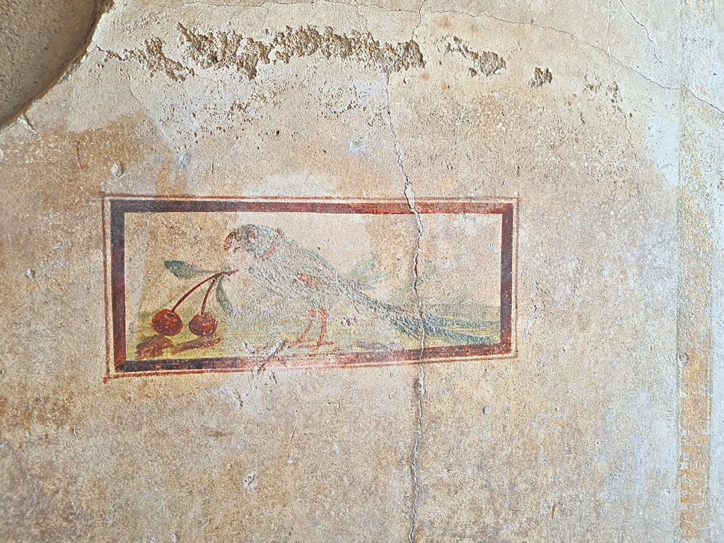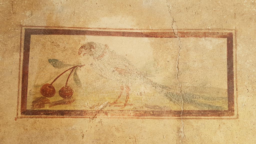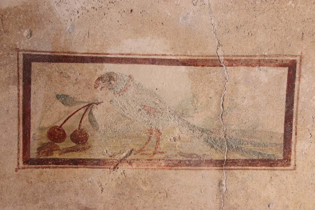 cubiculum to south-east of atrium, wall painting of bird with cherry. Photo courtesy of Klaus Heese.