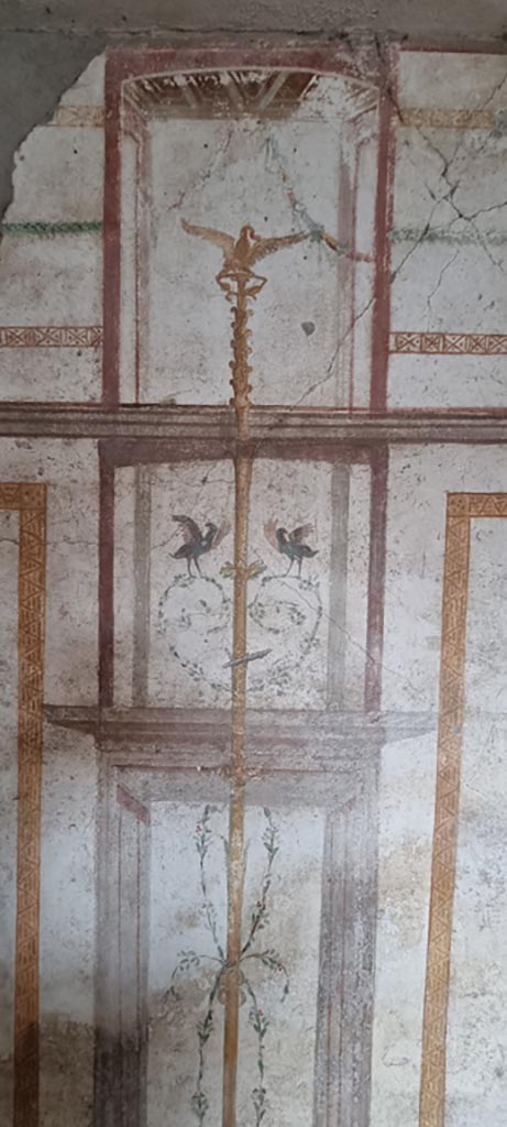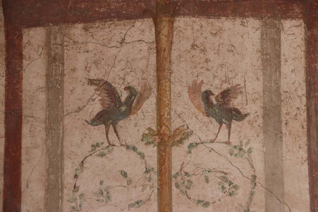 South wall of cubiculum to south-east of atrium, upper central part of painted decoration. Photo courtesy of Buzz Ferebee.