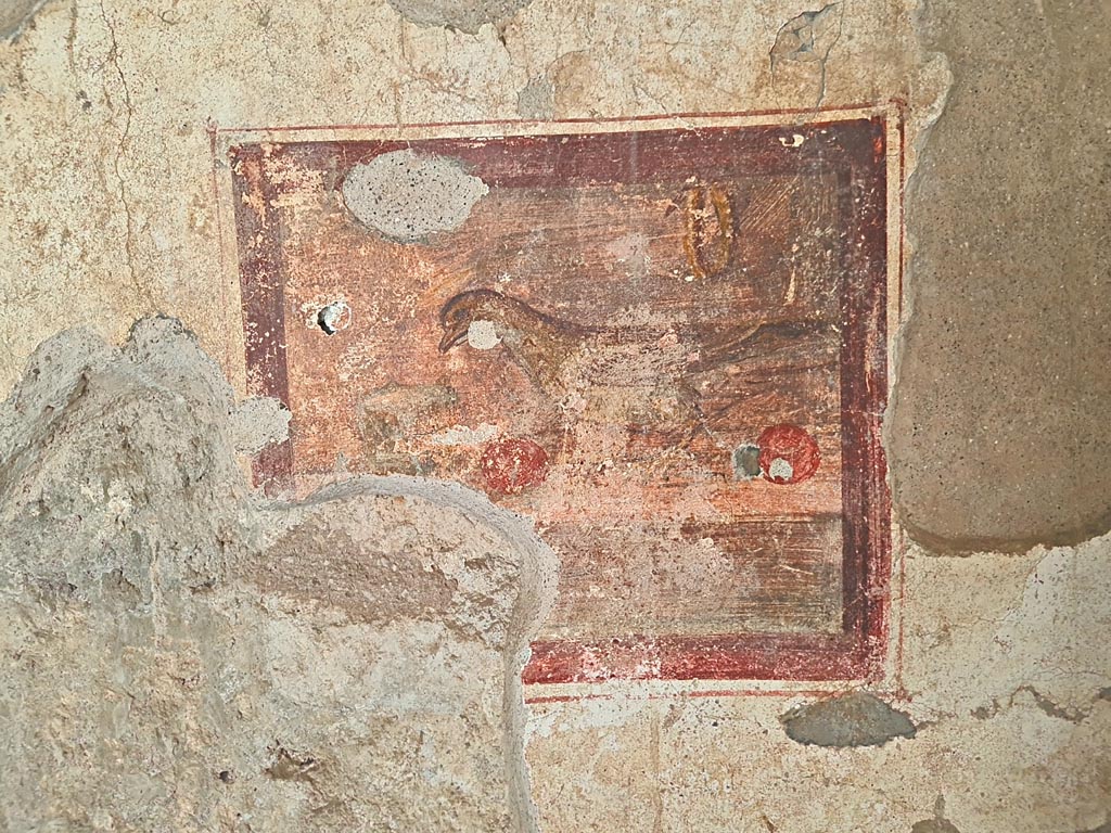 I.7.11 Pompeii. December 2006. Wall painting of bird with vase, on east wall under window