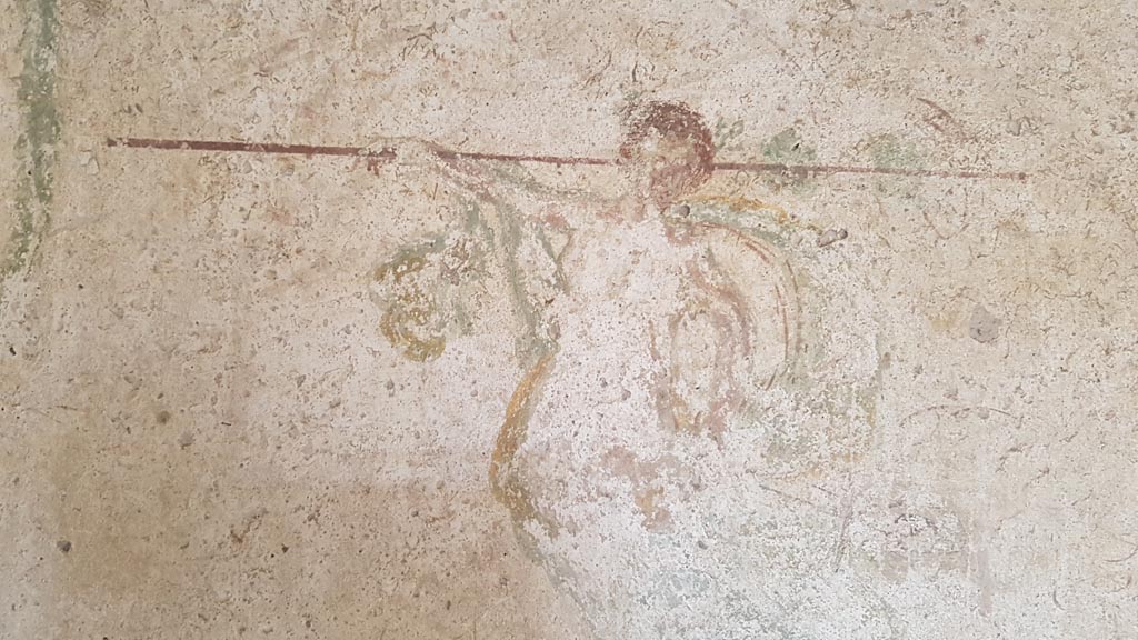 I.7.11 Pompeii. August 2023. Detail of painted figure from centre