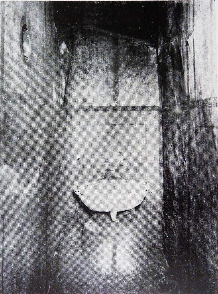 I.7.11 Pompeii. Old undated photograph showing small room with bronze basin, when first excavated.