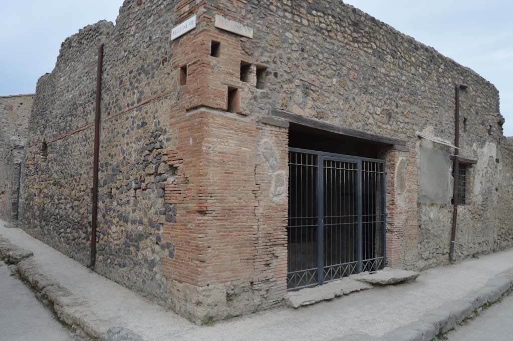 I.8.15 Pompeii. December 2018. South-west corner of insula, with entrance doorway on Via di Castricio, in centre.