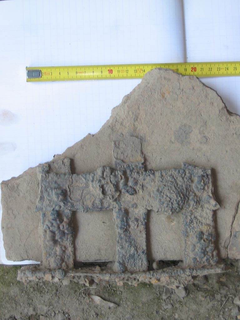 I.8.15-16, Pompeii. May 2003. Detail of iron grating removed from window. Photo courtesy of Nicolas Monteix.
