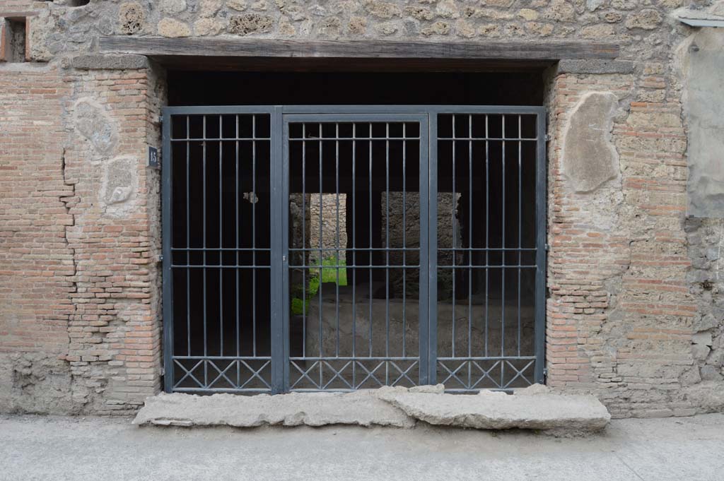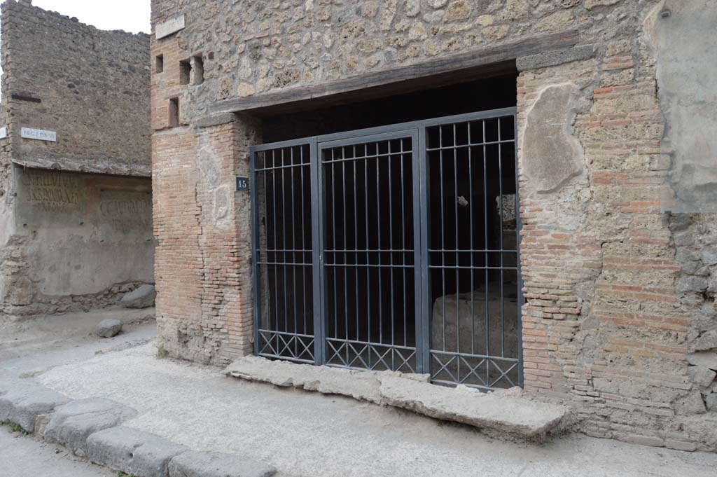I.8.15 Pompeii. October 2017. Looking north to detail of front