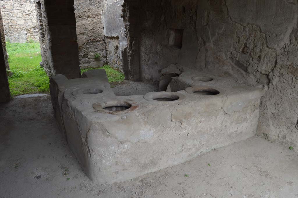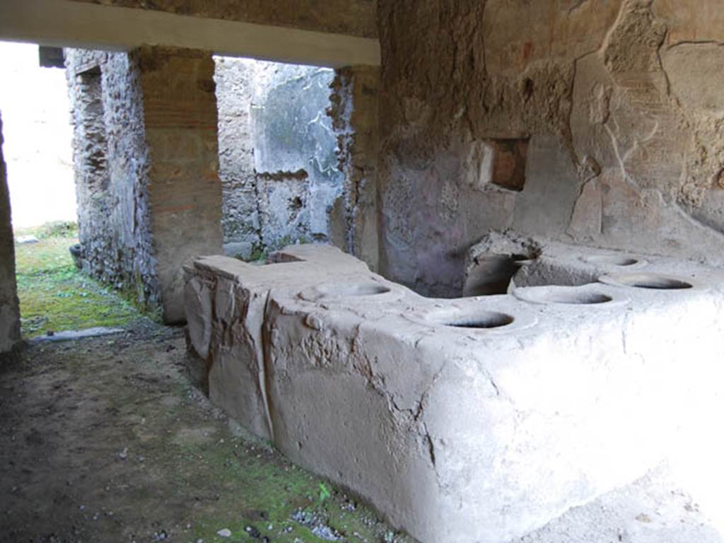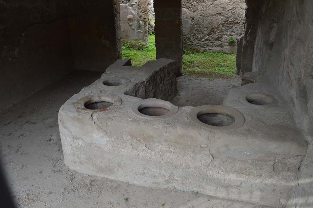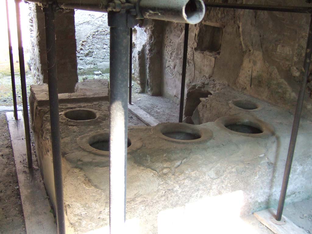 I.8.15 Pompeii. May 2003. Looking down to top of counter and some of the inset dolia. Photo courtesy of Nicolas Monteix.