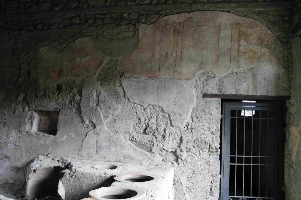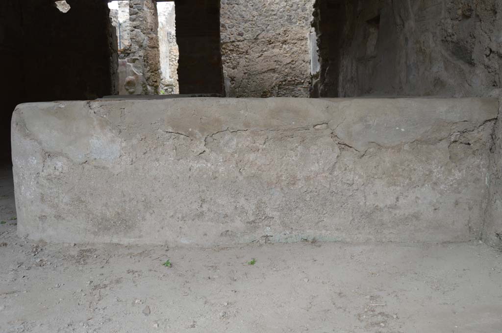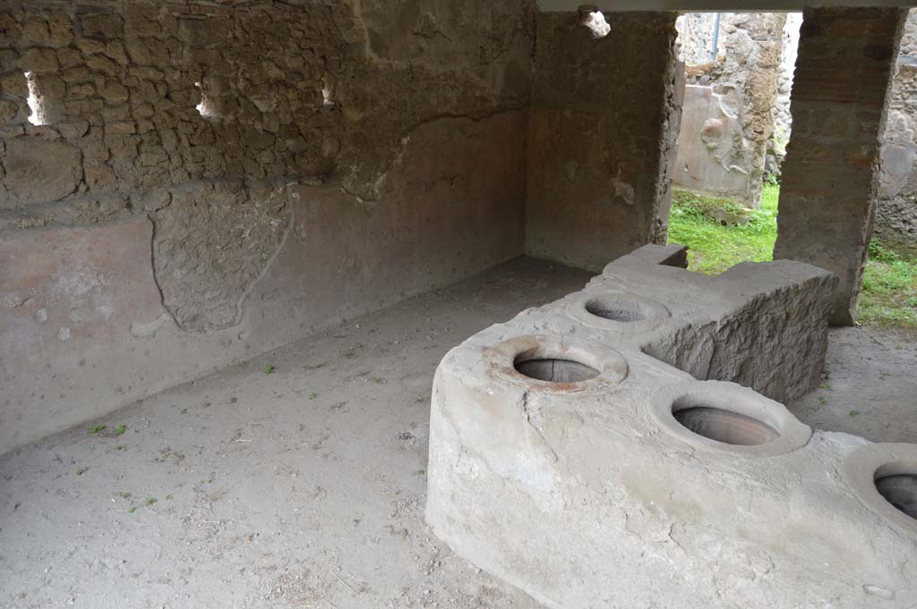 Pompeii. October 2017. Looking north along east wall of shop-room.