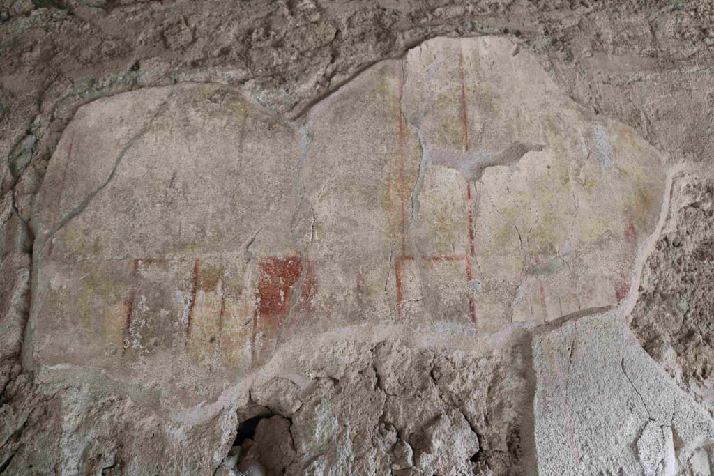 end of east wall with painted decoration above doorway, leading to kiln and plant