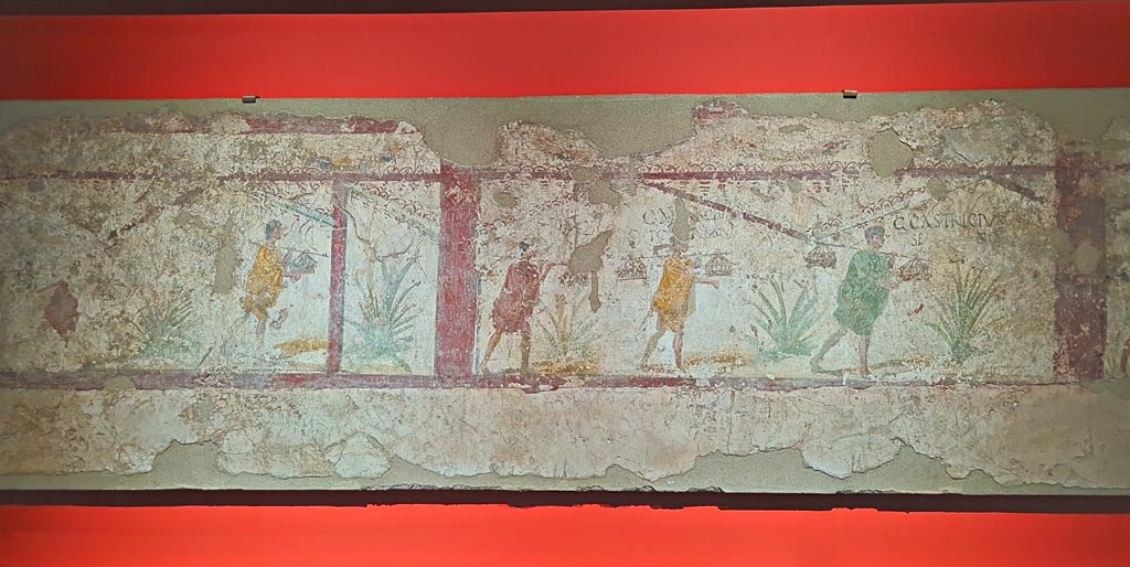 I.8.15 Pompeii. March 2024. Painted panel, on display in exhibition in Palaestra, entitled -