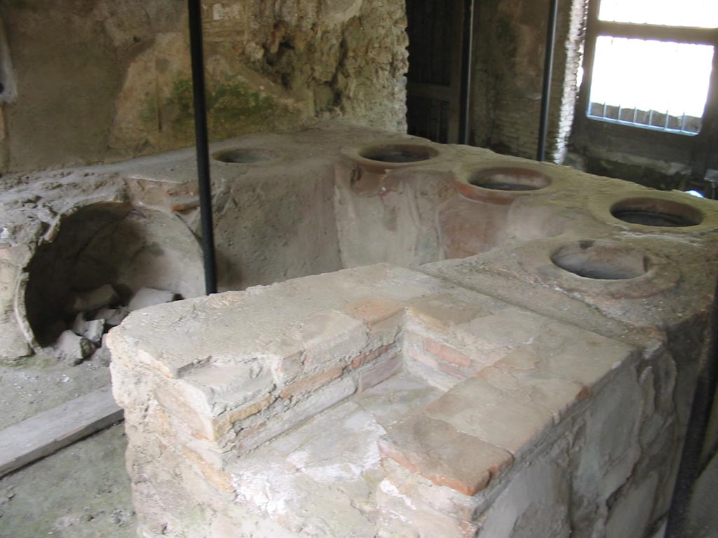 I.8.15 Pompeii. May 2003. Looking down at hearth on end of counter. Photo courtesy of Nicolas Monteix.