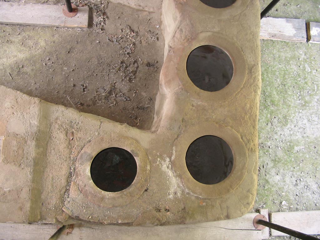 The eastern part, with the neighbouring dwelling at I.8.14, was used as a “colouring” plant. No colours had been found here because the site was not functioning in 79AD, but the oven of small dimensions with its slow drying plate, three manual reels/mules and nine mortars with pestles left in the room, leave no doubt about its use.