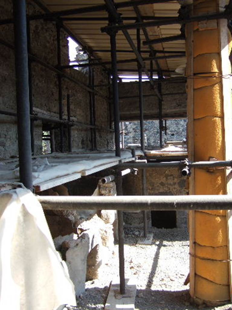According to Jashemski, part of the floor on the north, east and west portico of the peristyle of I.8.2, was destroyed by bombing in 1943.