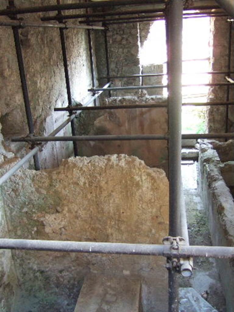 I.8.19 Pompeii. September 2005. Looking east into cistern at lower level, with peristyle of I.8.2 above.