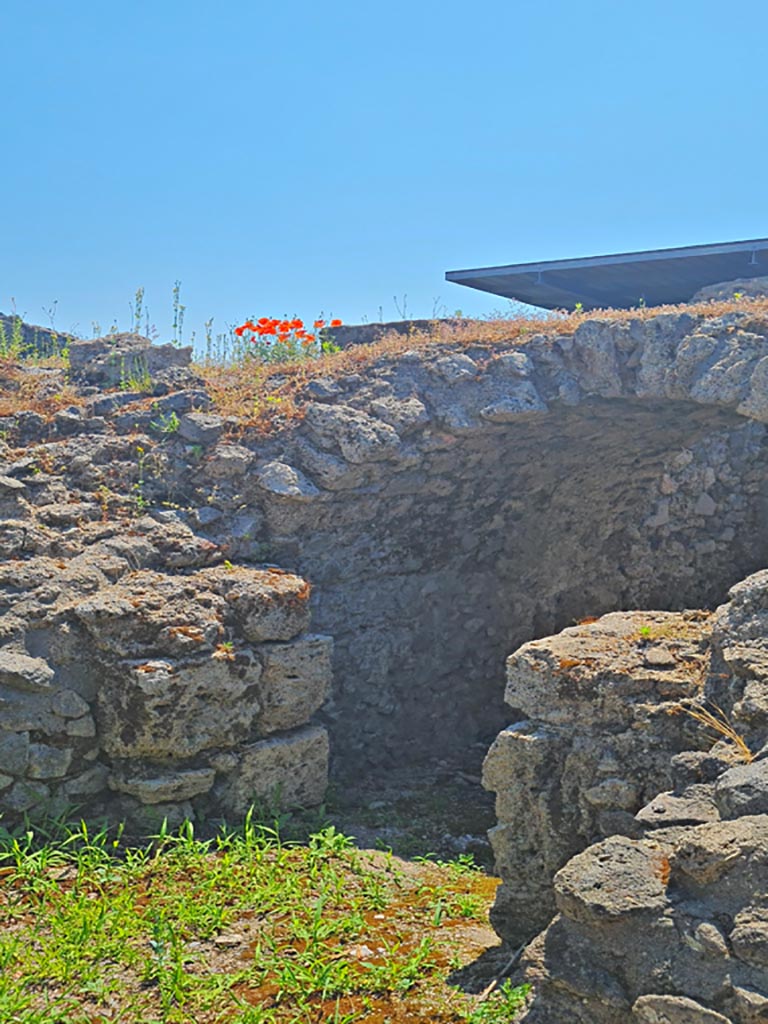 I.8.19 Pompeii. June 2024. Looking east towards lower level.