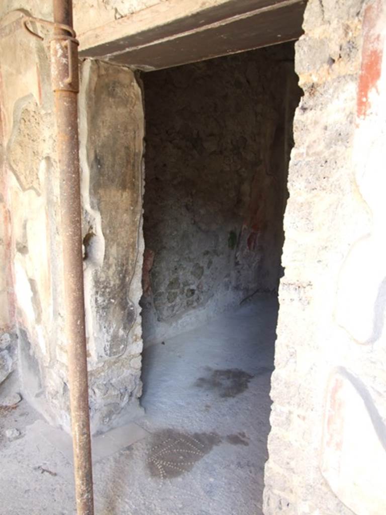 Doorway to room 11, oecus in north-east corner of peristyle with decorative flooring.
