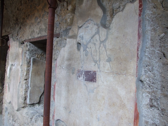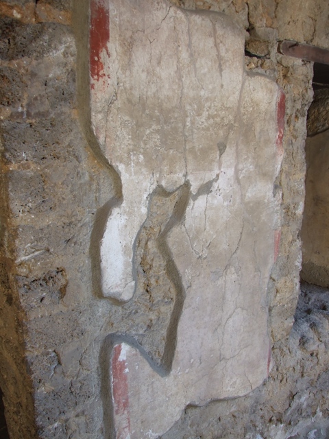 ![I.10.11 Pompeii. March 2009. Room 10, east of the staircase, plaster on north wall of the peristyle.
