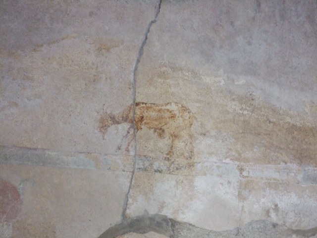 I.10.11 Pompeii. March 2009. Room 12, painting of a goat from upper part of east wall of cubiculum.
