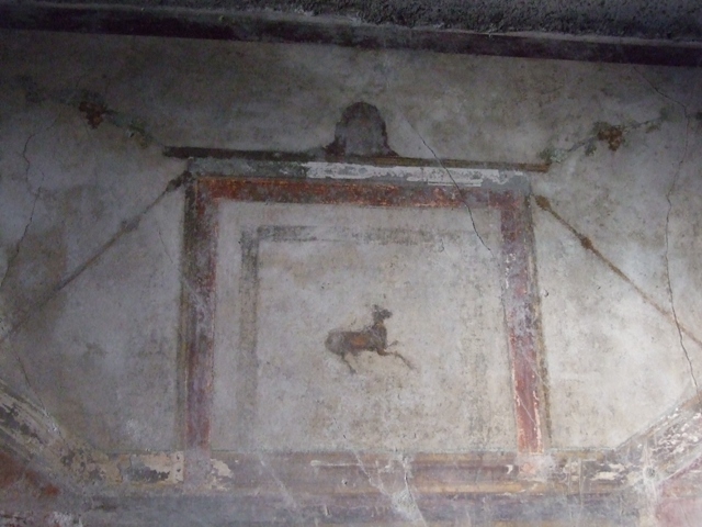 I.10.11 Pompeii. March 2009. Room 12, painting of a goat, from upper centre of north wall of the cubiculum.