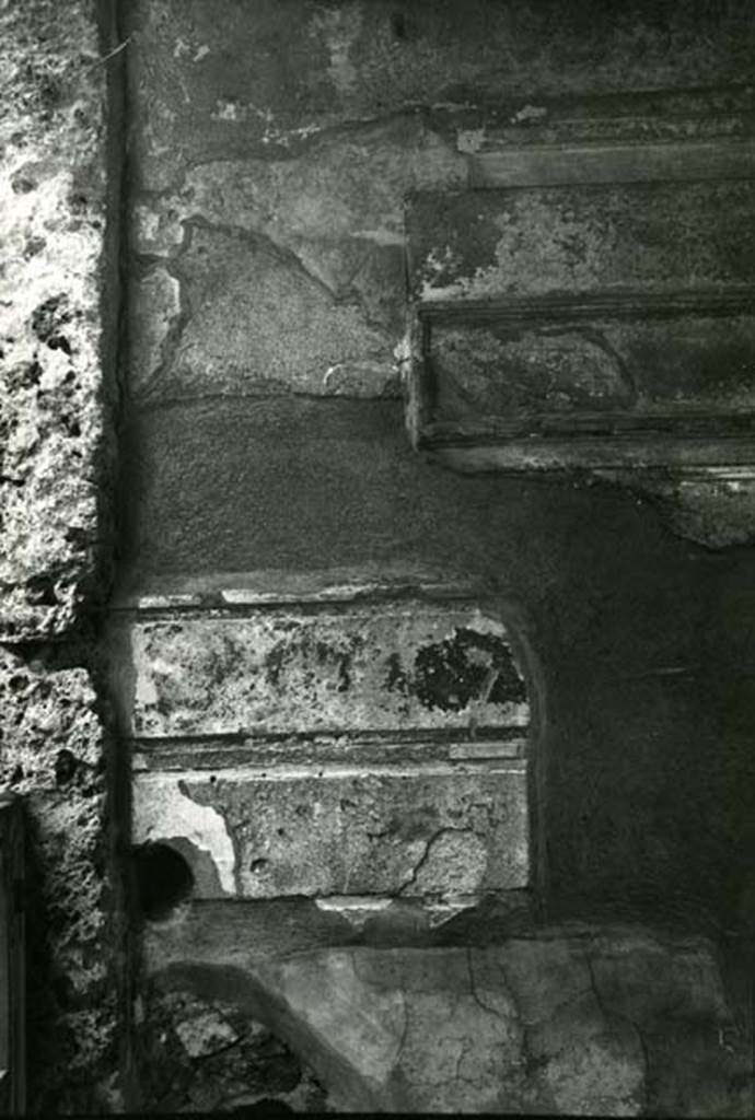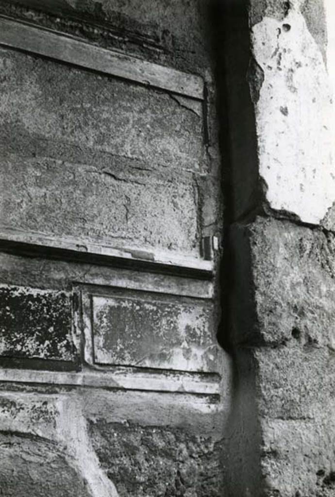 I.15.3 Pompeii. 1968. House of Ship Europa, exterior façade on west (right) of entrance doorway. Photo courtesy of Anne Laidlaw.