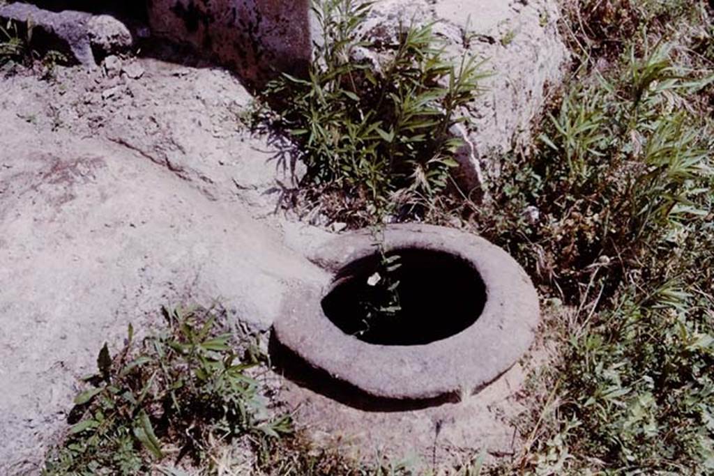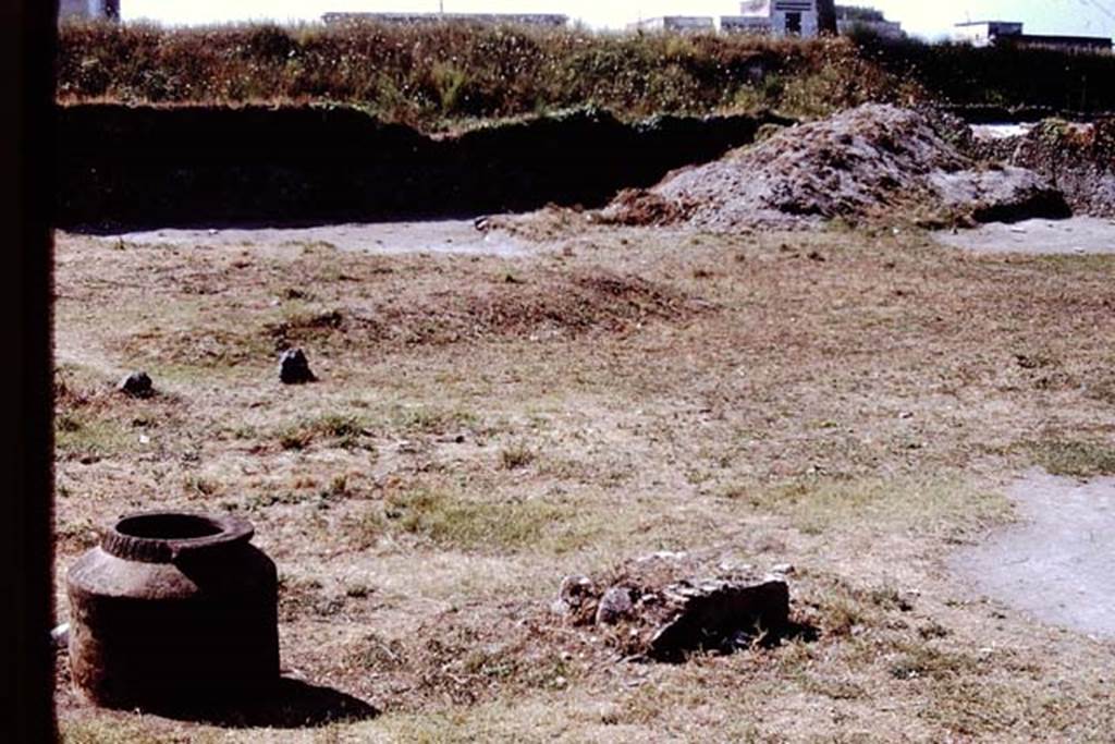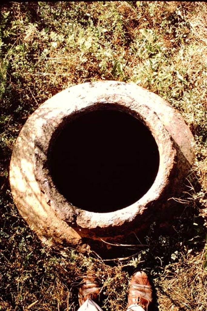 I.20.1 Pompeii. 1964. Large dolium buried in the soil at the edge of the soil near the small room.