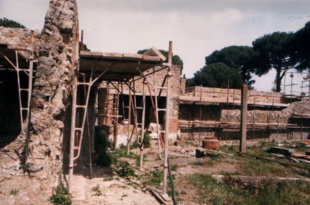 I.20.1 Pompeii. April 1987, showing the structure during consolidation. Looking east. Photo courtesy of Guy de la Bedoyere.