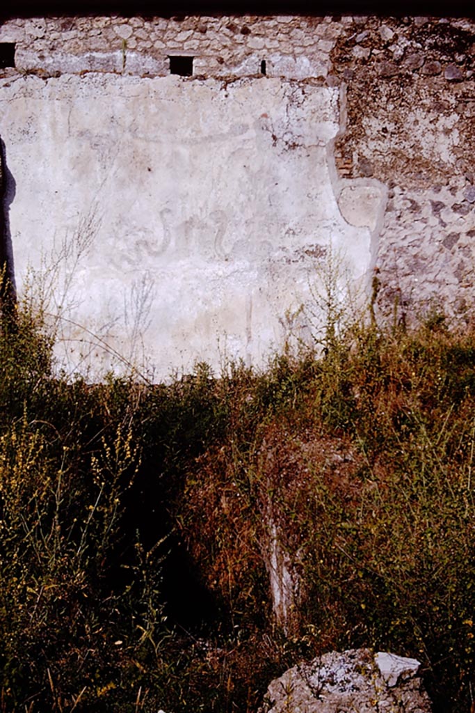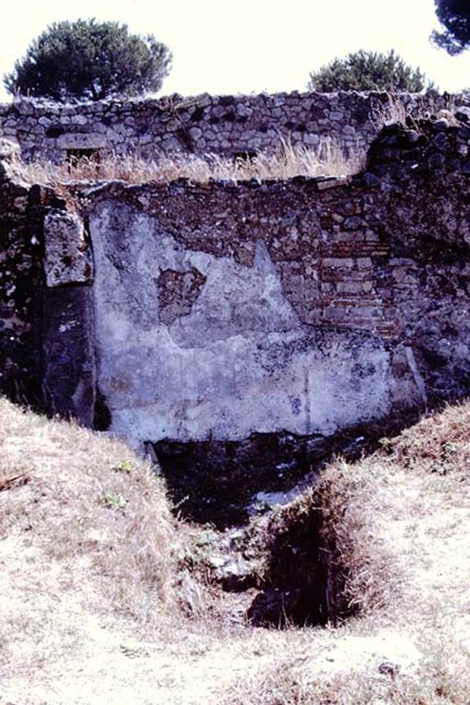 Looking north-east towards remains of lararium painted on the east wall. Photo by Stanley A. Jashemski.