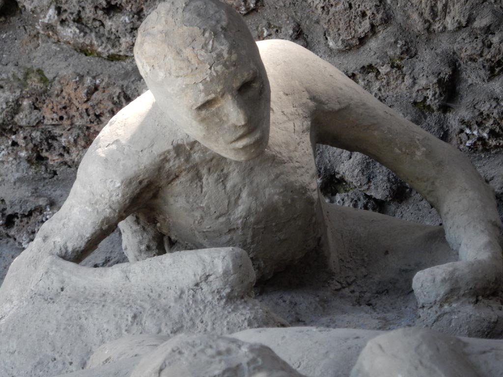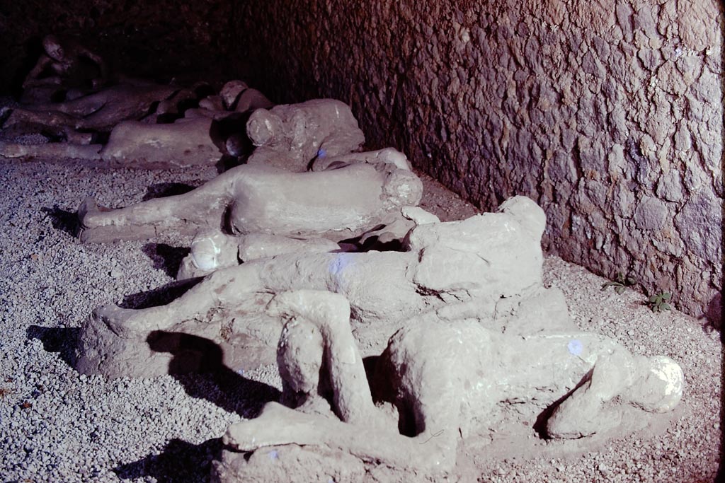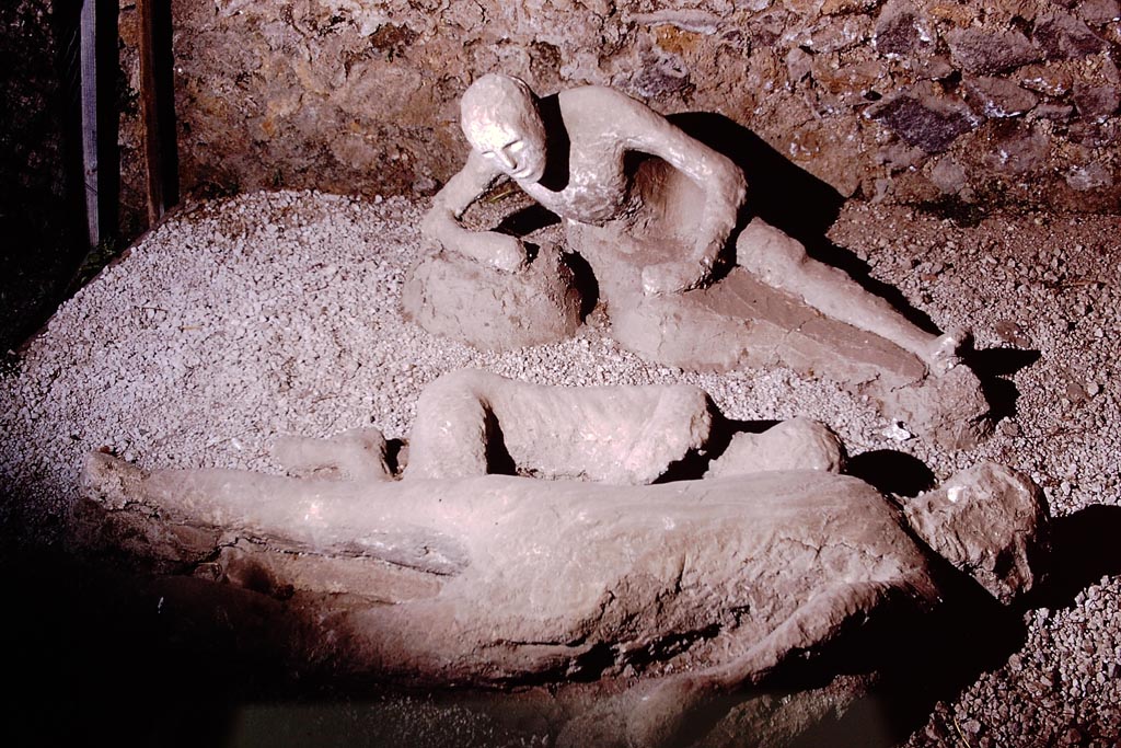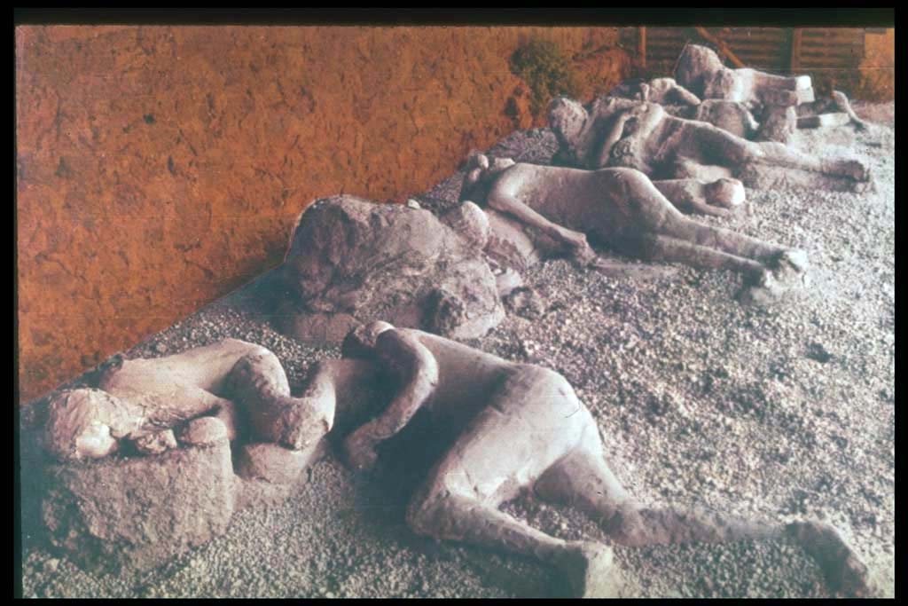 Detail of plaster casts of impressions of three bodies. Side view, rear to front, of Victim 43, victim 44 and victim 45. Photo by Stanley A. Jashemski.