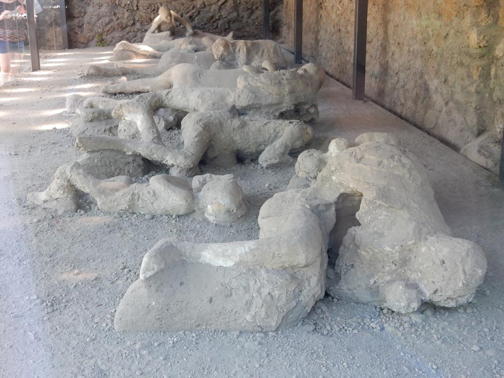 Pompeii. April 2019. Looking along plaster-casts of bodies. Photo courtesy of