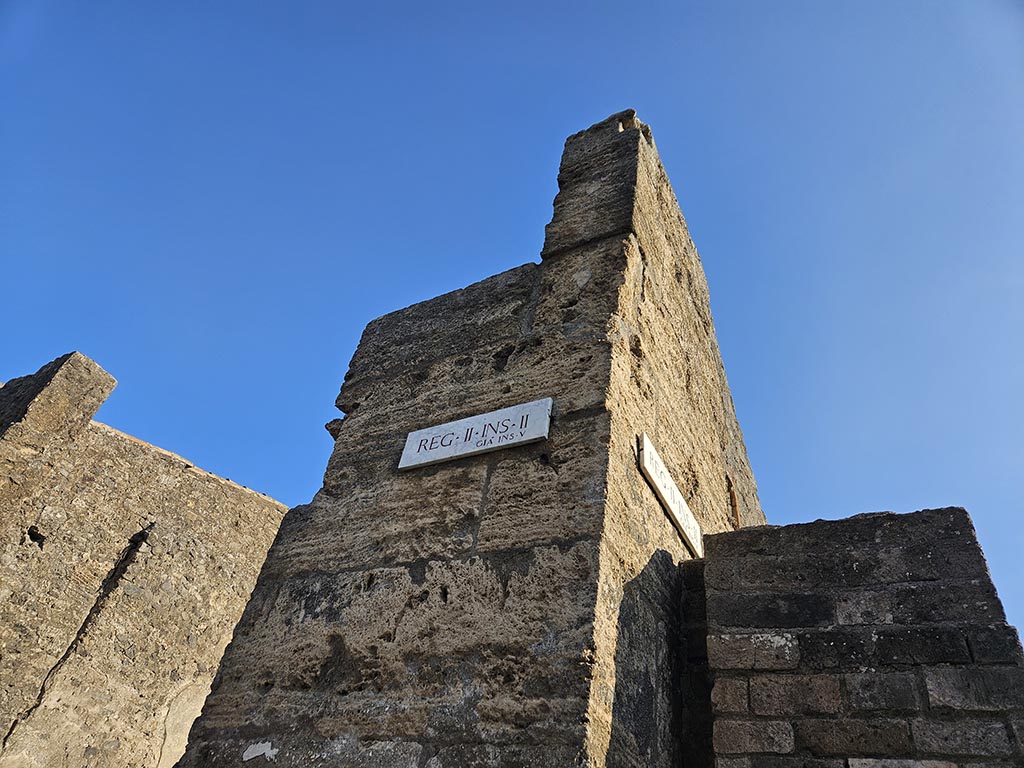 Insula identification plaque describing it originally as Reg. II, Insula V. Photo courtesy of Annette Haug.