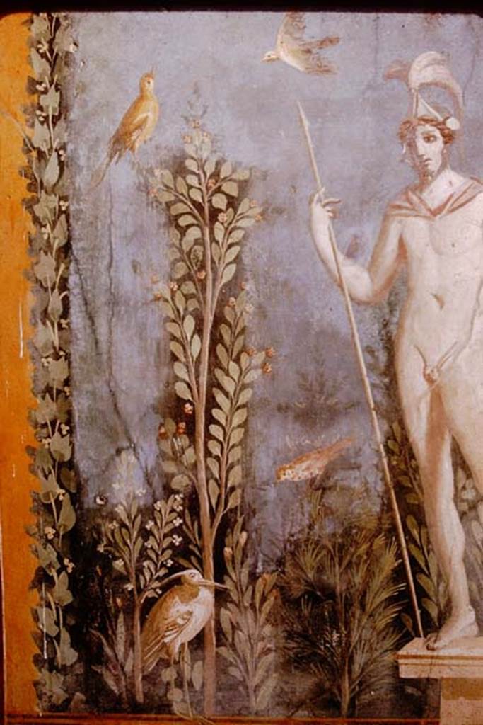 Room 11, detail of heron bird on east side of Mars. Photo by Stanley A. Jashemski.