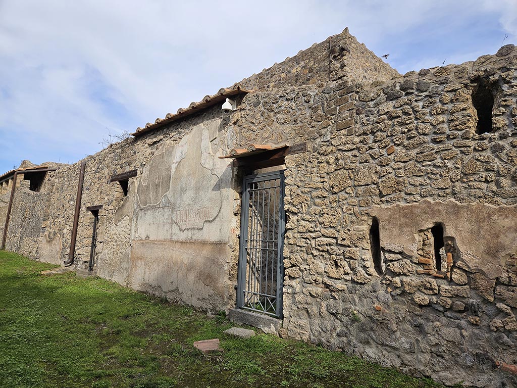 II.4.10 Pompeii. November 2024. Painted inscription on north side of entrance doorway. Photo courtesy of Annette Haug.