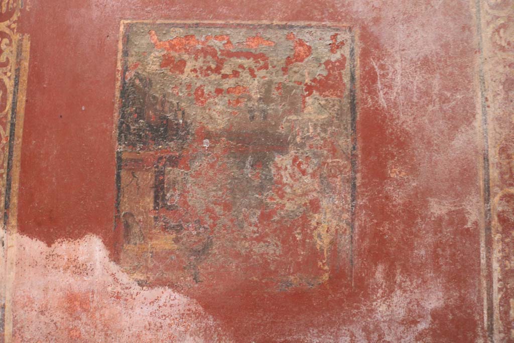 II.8.6 Pompeii. December 2018. Detail of a wall painting in room, from east wall on right. Photo courtesy of Aude Durand.