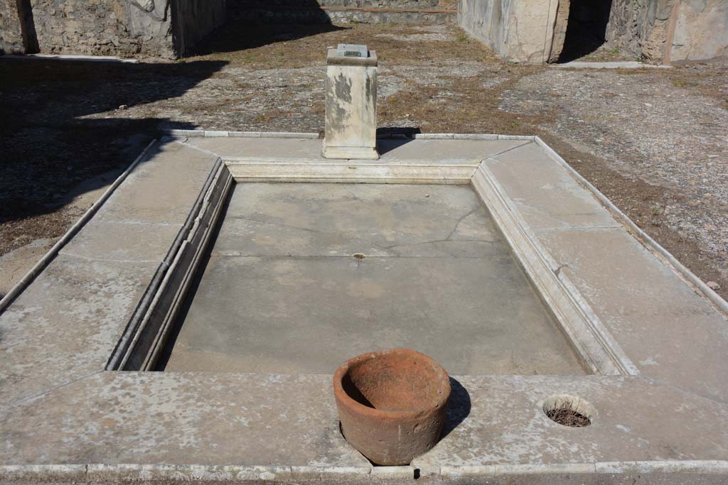 V.1.7 Pompeii. October 2020. Room 1, atrium. Pedestal on marble impluvium. Photo courtesy of Klaus Heese.