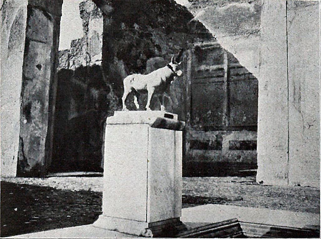 V.1.7 Pompeii. 1906. Room 4, atrium. Pedestal on impluvium with bronze bull.