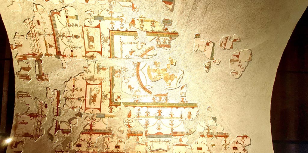 Amb. 9. Ceiling of cubiculum, on display in exhibition in Palaestra. Photo courtesy of Giuseppe Ciaramella.