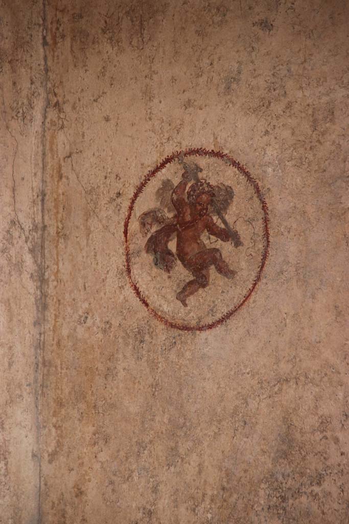 Cubiculum 9, detail of painted medallion with cupid, from east end of north wall. Photo courtesy of Klaus Heese.
