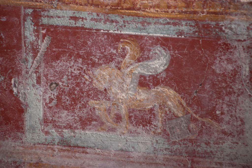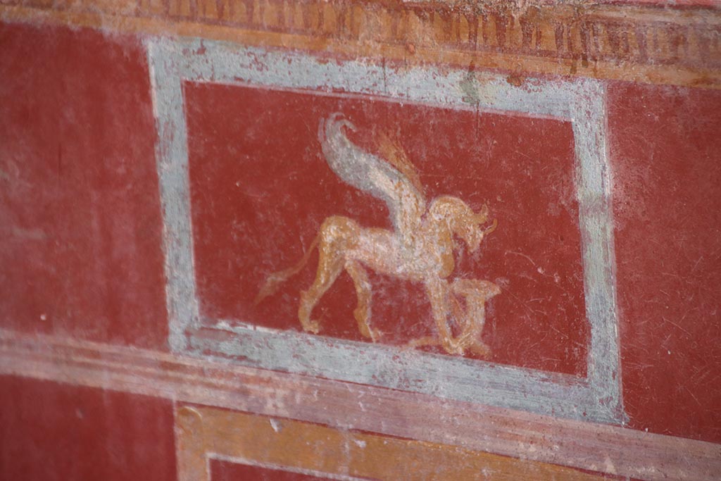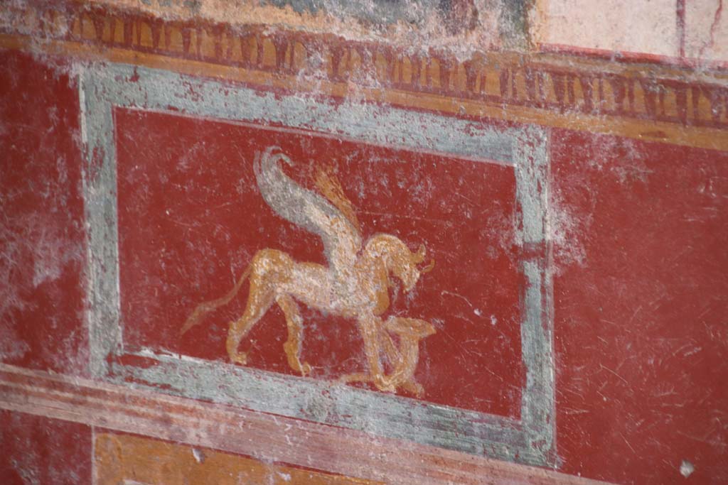 Detail of painting of flying Pegasus or flying griffin, from zoccolo/dado on east wall at south end. Photo courtesy of Klaus Heese.