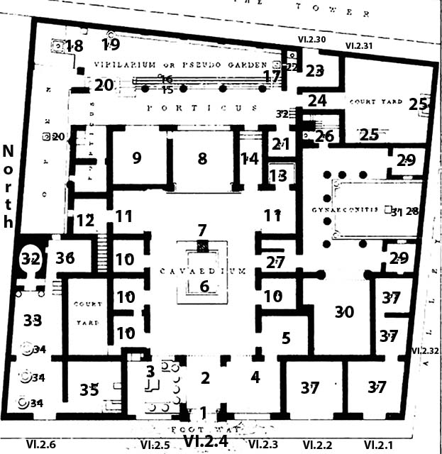 VI.2.4 Pompeii. View of house as shown on the cork model in the Naples Museum.