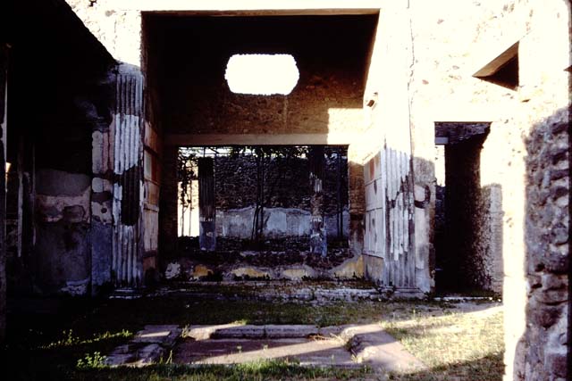 VI.2.4 Pompeii, 8th August 1976. Looking east across atrium and impluvium towards tablinum.