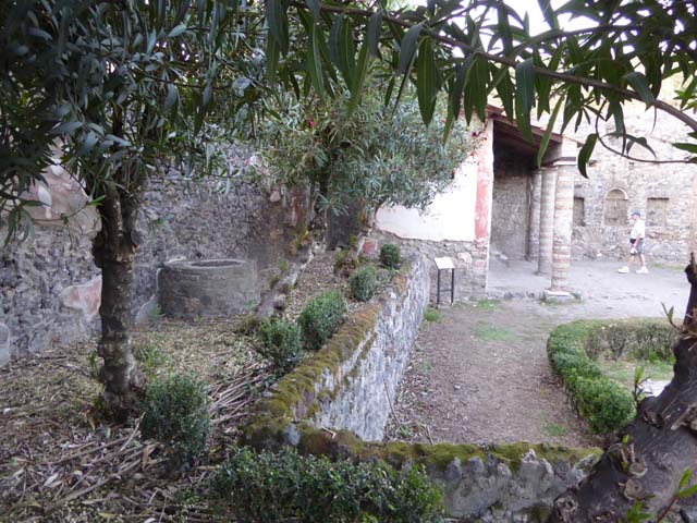 Looking north across garden terrace towards the well, on the left, and cubiculum, ahead. Photo courtesy of Michael Binns.