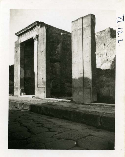 VI.12.2 Pompeii. pre-1937-39. Looking north-west on Via della Fortuna towards the entrance doorway.