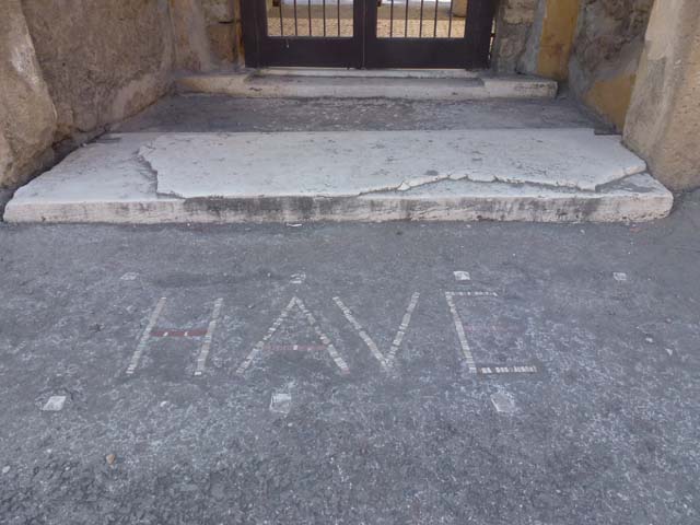VI.12.2 Pompeii. June 2012. Entrance threshold or sill, with HAVE (Welcome) written in the pavement. Photo courtesy of Michael Binns.
