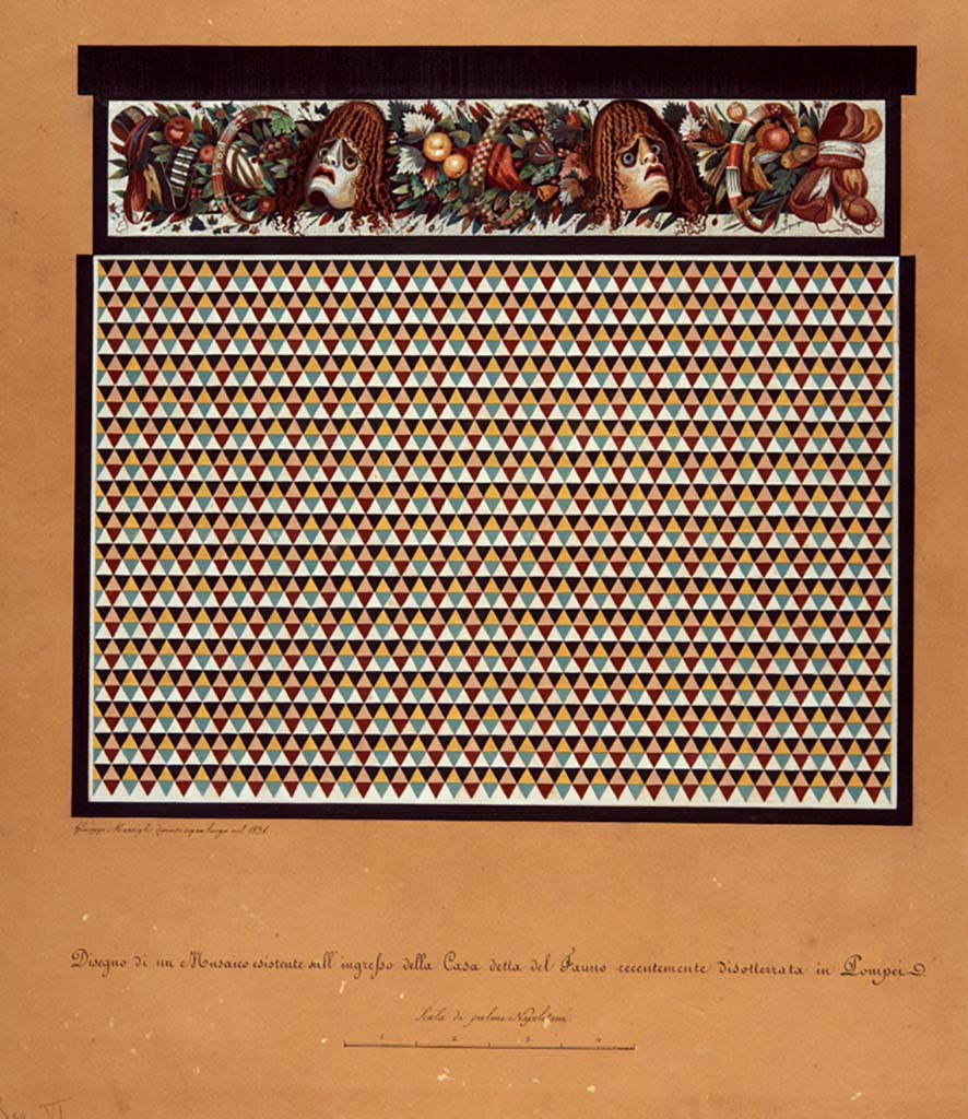 VI.12.2 Pompeii. Painting by Giuseppe Marsigli, 1831, entitled design of a mosaic existing at the entrance of the house called “of the faun”.