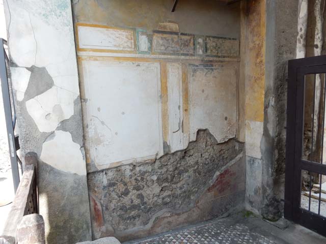 VI.12.2 Pompeii. May 2015. Entrance fauces, detail from lower east wall. Photo courtesy of Buzz Ferebee.