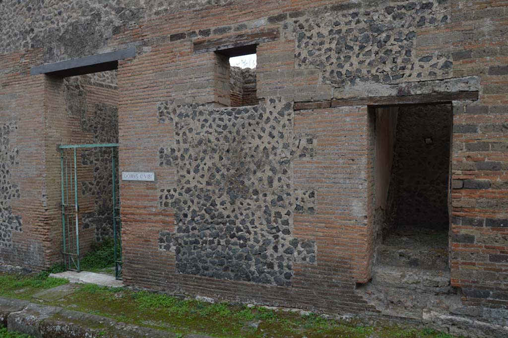 VII.2.18 Pompeii. October 2017. Looking east towards entrance doorway on Vicolo del Panetierre.